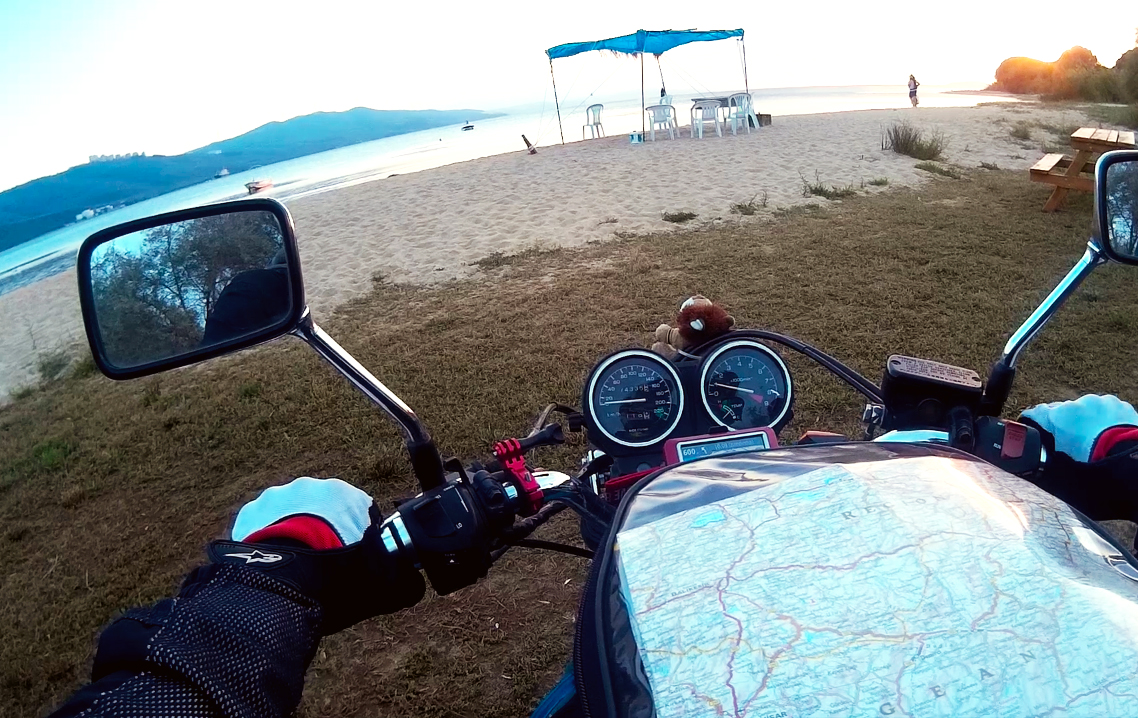 Trackbacks are closed, but you can post a comment. Screen Shot 2015-09-24 at 8.17.30 AM Around the evening we found a nice campsite near Erdek. There I also learned that my bike does not like sandy beaches alot and tend to dig itself in